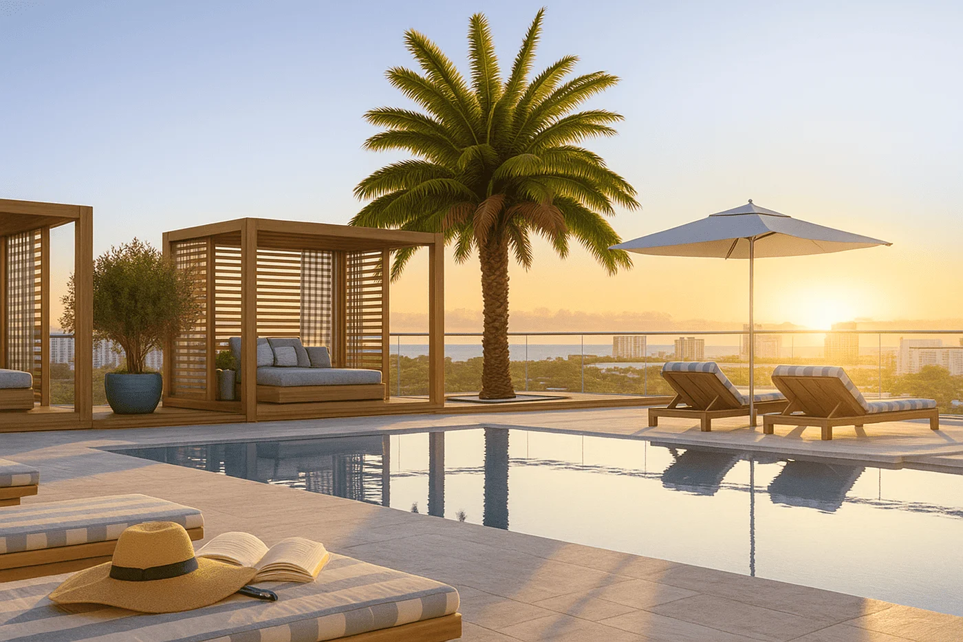 10th Floor Rooftop Oasis: Pool, cabanas, firepit, outdoor grill, first downtown Boca building to offer this.