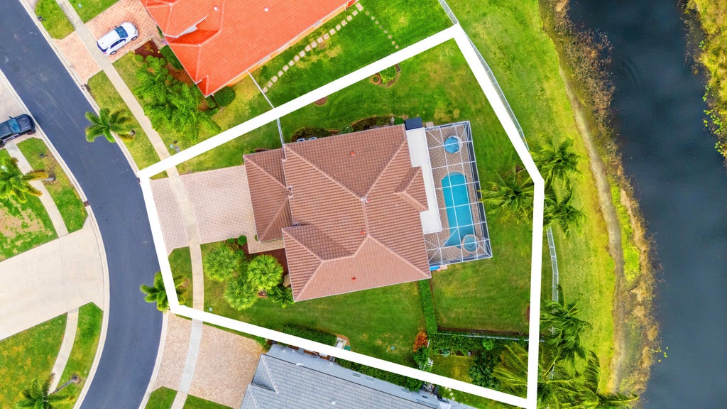Rare opportunity to settle into the smallest and most exclusive gated community of Madison Green, Saybrook. Offering an oversized irregular lot with large backyard and caged in patio/ pool/ covered lanai. Private backyard with views of the 11th fairway. New 2024 roof and accordion shutters. Both A/C units are 2018. All new pool equipment. Professionally cleaned and sealed grout. ALL CBS structure with over 3,400 sq ft under air. Grand entry way with vaulted ceilings. Wrap around downstairs with formal dining room, family room, living room, and full bathroom. Large den with french door entry. Custom kitchen with island and walk in pantry. Grand over sized master bedroom and bathroom featuring a soaking tub and separate shower. Upstairs balcony with access from primary and second bedroom.