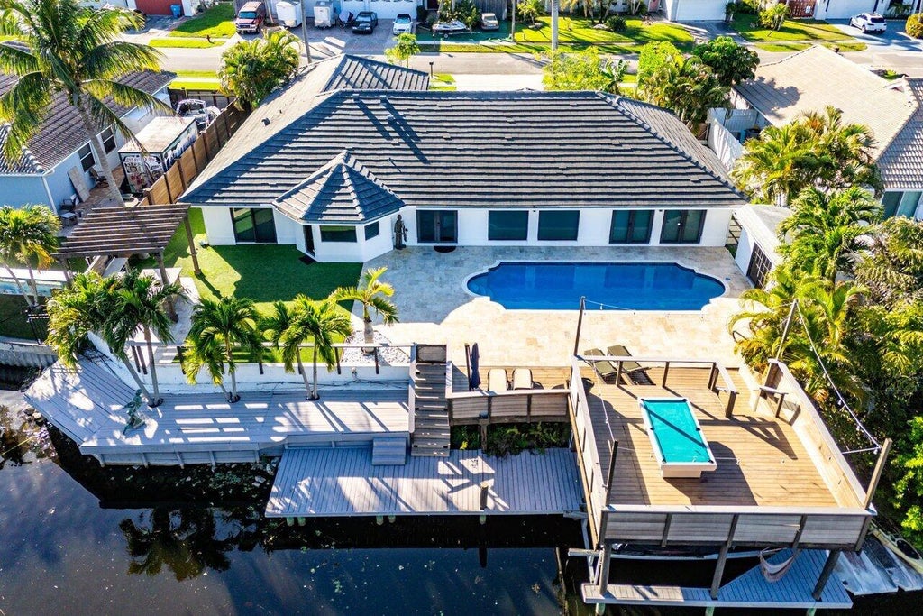 Discover this beautifully remodeled contemporary waterfront home, perfectly situated on the E7 canal off Lake Ida. Designed with vaulted ceilings and custom finishes, this 4-bedroom, 3-bathroom residence is completely move-in ready.Enjoy peace of mind with complete impact doors and windows, plus a newer flat tile roof. The backyard is an entertainer's dream, featuring a heated pool, upper and lower deck, turf, boat lift, and an A/C pool house--currently used as a private office. Unwind in the outdoor kitchen, rinse off in the outdoor shower, and experience some of the best fishing on the lake right from your own backyard. Don't miss this rare opportunity to own a fully upgraded waterfront retreat!
