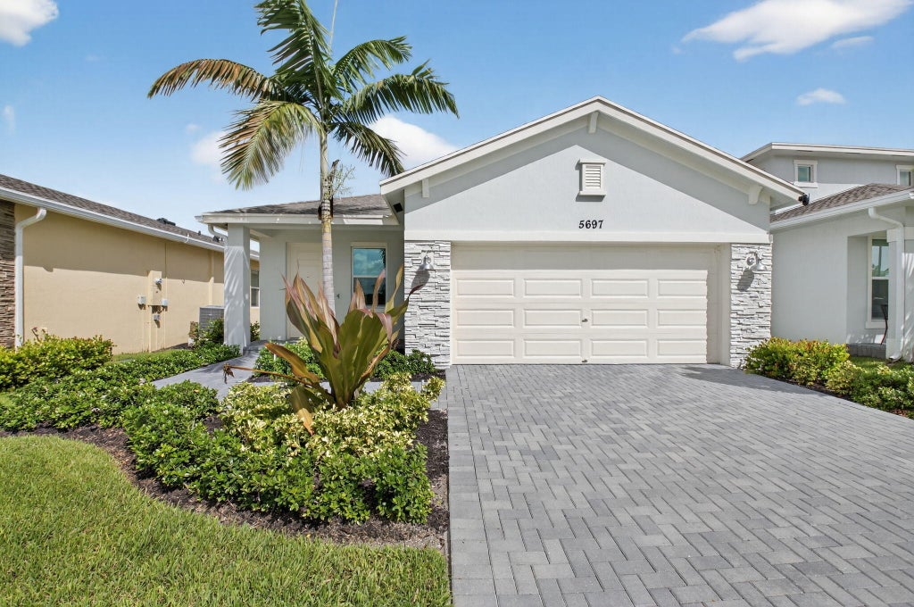 Rare Lakefront Gem in Delray Trails!Welcome to 5697 Graceful Way, a 2024 new construction home on a premium lakefront lot in Delray Beach's newest 55+ community. This move-in ready residence offers 3 bedrooms, 2 bathrooms, and an open concept design filled with natural light from full impact windows. The modern kitchen boasts quartz counters, stainless steel appliances, and an island with lake views. Upgrades include tile flooring throughout (no carpet) and epoxy garage flooring.Community highlights: low HOA, gated entry, lawn care, and incredible planned amenities--clubhouse with cafe/bar, resort pool, fitness center, pickleball, walking trails, and social events.Unbeatable location: just minutes to Atlantic Avenue, beaches, golf, dining, shopping, and medical facilities