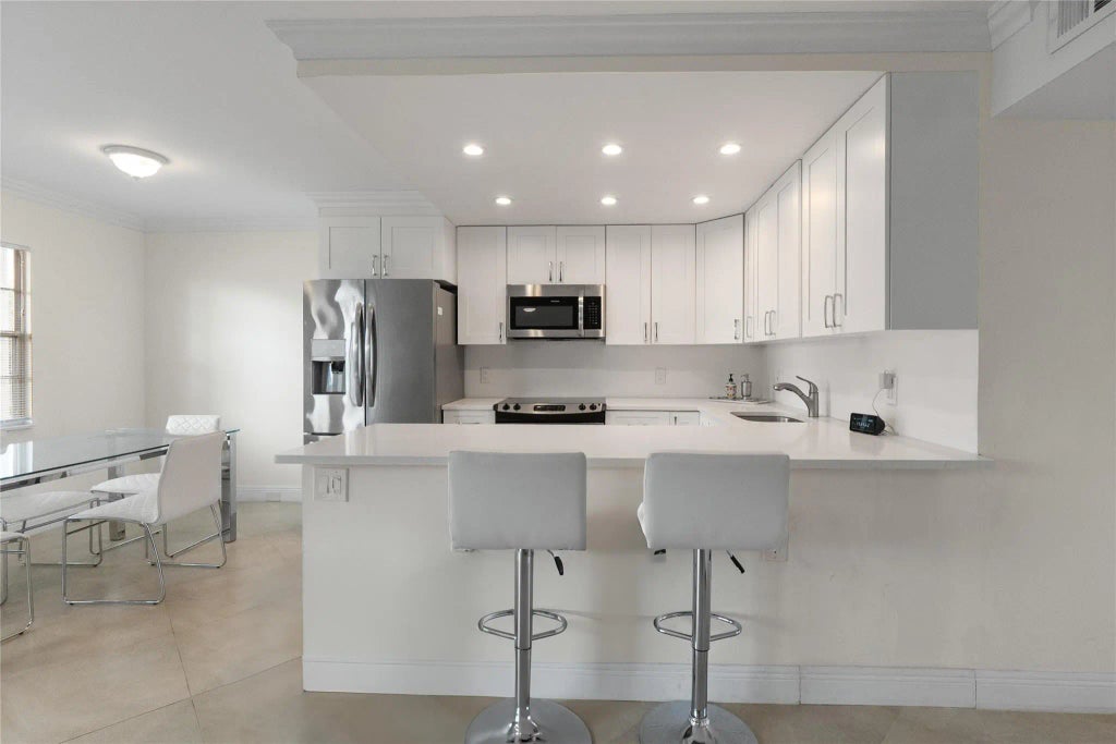 Welcome to Newport N, one of the top 10 financially buildings in CVE. Completely designer renovated, move-in-ready waterfront condominium. Modern, open-concept design features a fabulous bright white open kitchen with newer white cabinets—including a , gleaming countertops that seamlessly flow into the living and dining areas, making it perfect for entertaining. Full 2baths, One shower, one bath, Ensuite bath larger than most! Large balcony surrounded by water, feel the breeze year-round. New Elec Panel, newer water heater. Very stable association. Easy to see