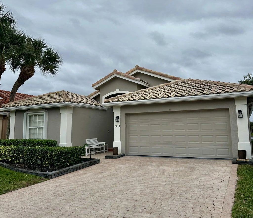 Owner relocating! This beauty is NOW PRICED TO SELL! Ponte Vecchio IS A VERY ACTIVE 55 plus community. Gorgeous clubhouse and facilities! LONG Lake Este model. An open-concept great room floor plan has a true third bedroom. Move-in ready. WATCH THE VIDEO attached, to get a sense of how special this home is. The Exterior of the home has just been freshly painted. Full hurricane-accordion shutters, Stunning Lake views from the open kitchen, great room AND primary suite. Gorgeous! The screened-in patio offers ample space for entertaining and highlights the bright Southern exposure with stunning water views as well as sunsets. A split-bedroom layout with 2 full baths. Luxury vinyl wood like floors throughout. Custom fitted large walk-in closet. Pre-inspected in perfect condition. The transom windows bring in all the light! framed mirrors, Soaking tub, Glass-enclosed shower and Dual sinks. Additional Home Features: Roof and home inspection confirms great condition. Community Amenities Include: designer renovated clubhouse, Resort-style pool & spa, State-of-the-art fitness center, Three regulation Tennis courts & six dedicated pickleball courts (expanded!), Two Bocce ball, billiards, card rooms, arts & crafts, Library, game room, and entertainment theater for top-tier shows, Professionally designed Putting green & driving range, No upcoming assessments for new sports complex additions, HOA allows 2 pets (max 35 lbs each) Monthly HOA: $623 | Capital Contribution: $3,738 |Internet, landscaping and security included. Application Fee: $300 No leasing permitted during the first 2 years of ownership Prime Location: Conveniently located near top shopping and dining destinations, including the new WHOLE FOODS. Easy access via Jog Road, or Hagan Ranch Road and just North of Boynton Beach Blvd. Ponte Vecchio is A Highly Sought-After 55+ Active Community of 647 homes, in Boynton Beach!