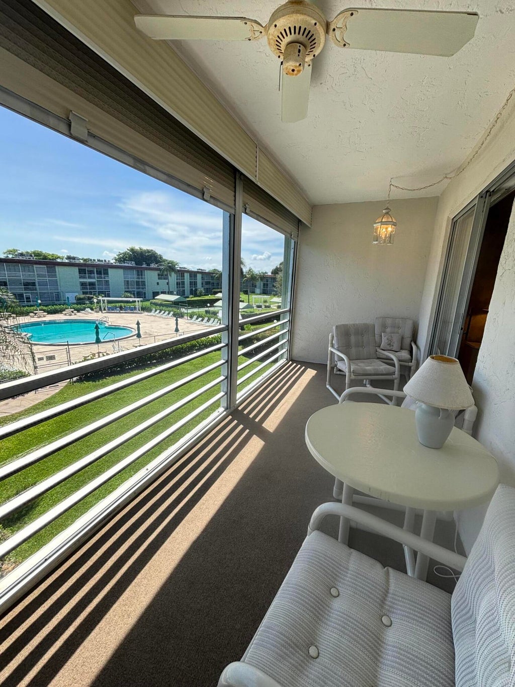 Serene 55+ community of Regal Palms! This third-floor unit boasts an incredible pool view, offering relaxing vibes right from your private screened-in patio. Ideally located near Palm Beach Airport, the community features manicured grounds, a clubhouse, pool, and more. The unit is sold as-is, ready for your personal touch. On-site laundry adds convenience to this tranquil escape!
