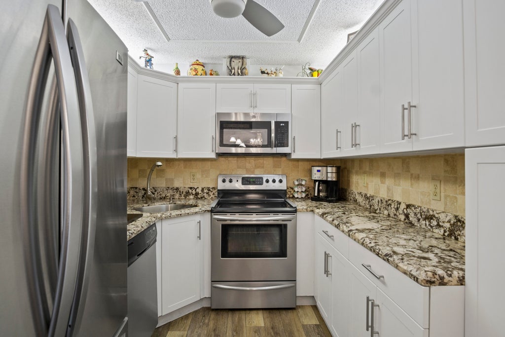 Welcome to Pine Ridge at Martin Downs. Enjoy a vibrant relaxed Florida lifestyle. Spend your days louging by the pool, or playing a friendly game of tennis. This 3 bed 2 bath condo is located on the second floor, in the newest building, in Pine Ridge. A Top Floor condo with an attic. Kitchen has Granite Countertops with newly added Ceiling Fan, and soft close cabinets. Stainless Steel appliances, A/C 2022, Water Heater 2018. Crown Molding. The Balcony is tiled and has a accordion hurricane shutter and roll down sun shades installed. Gated Community. Close to Fine dinning and Parks...
