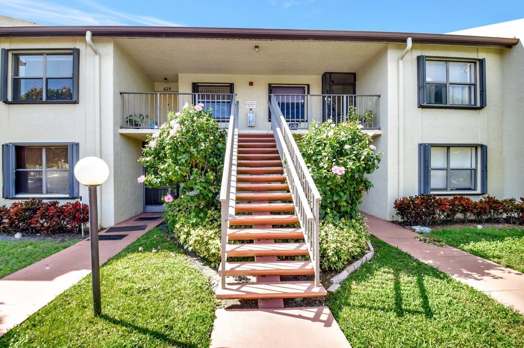 Welcome to this stunning second-floor condo in a highly sought-after 55+ community in Lake Worth! This spacious 2-bedroom, 2-bath home features an open floor plan, tall ceilings, gorgeous wood laminae floors and crown molding throughout. The eat-in kitchen is perfect for casual dining, while the screened-in lanai offers a serene spot to relax and enjoy the Florida sunshine.Both bedrooms boast walk-in closets and separate baths, providing comfort and privacy. The convenience of an new in-unit washer and dryer adds to the efficiency.Enjoy an active lifestyle with access to two clubhouses, heated pools, a fitness center, tennis, pickleball, bocce ball, shuffleboard, and more! Located just east of the Turnpike, this condo is minutes from shopping centers, restaurants, and airports making it ideal for year-round living or a seasonal retreat. The pet-friendly community offers peace of mind with an HOA fee covering water, cable, and exterior maintenance. Entry light fixture does not convey This condo is clean as a whistle and move-in ready. Don't miss out. Call today to schedule a showing!