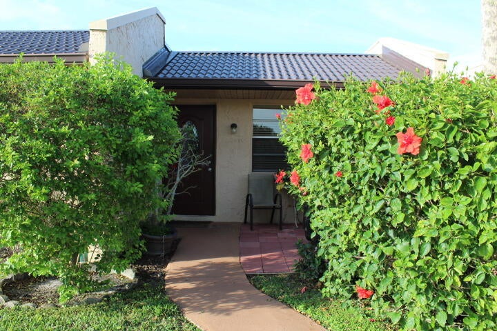 Spacious, updated waterfront villa offers 2 bedrooms, 2 full bathrooms, main bedroom includes 2 closets with a walk-in closet. The kitchen has wood cabinets and sleek black countertops and appliances, formal dining room, and laminate wood floors throughout. Washer /dryer conveniently located inside closet. FL room has hurricane impact windows. Backyard patio is perfect for relaxing and enjoying the peaceful water view. Close to the clubhouse, trash bins and mailboxes. HOA fee includes water, cable, building insurance, lawn care, pest control, exterior maintenance, 24-hour guard gate, and access to several pools, tennis courts, a cafe, billiards, clubhouse 4 events & more. Assigned parking and guest spots are right in front. A small dog or cat is allowed, leasing permitted w restriction