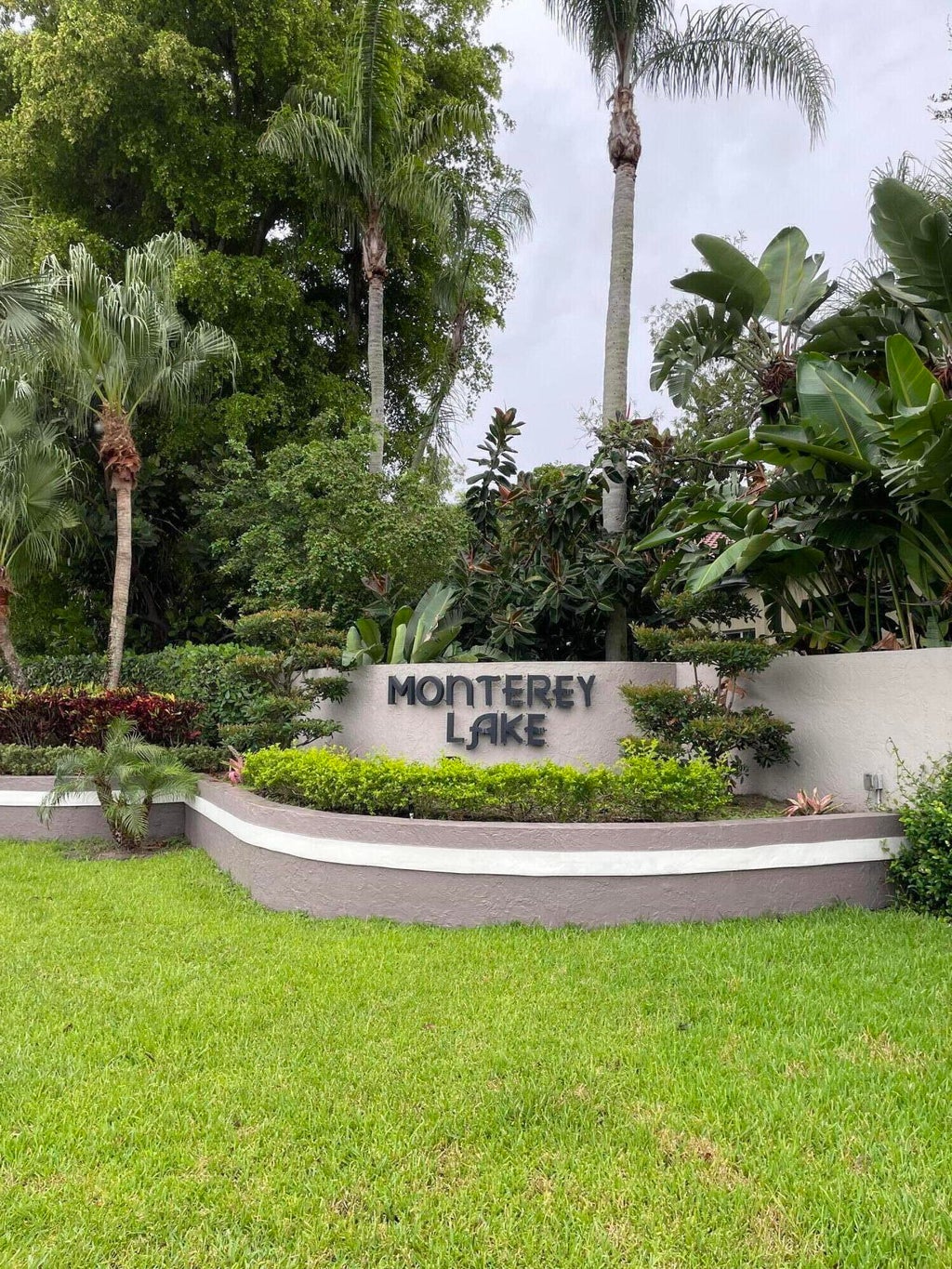 LAKEFRONT BEAUTY! Enter this 2,164 sq ft, 3-bedroom home via private courtyard. The large open living/dining area awaits you with vaulted ceilings, natural light and wonderful lake views. The downstairs main bedroom offers ample closets w/ built-ins, lake views and updated bath with double sinks, Roman tub and large walk-in shower. The eat in kitchen, with courtyard views, has ample cabinets, granite counters and newer appliances. 2 Bedrooms and a bathroom are upstairs. Bedrooms are a split plan to allow privacy for all. Relax to the sound of the lake's fountain on your enclosed patio for morning coffee and evening beverages. 2 Car Garage* No Carpet* Laminate and tile flooring* Monterey Lake features tennis*pickleball*basketball courts* clubhouse*heated pool/spa*sauna*fitness center*Monterey Lake is close to restaurants, shopping, Delray Medical Center, I95, beaches and the famous Atlantic Avenue in downtown Delray. Come and enjoy a resort lifestyle here in Delray Beach and the lovely, gated community of Monterey Lake!