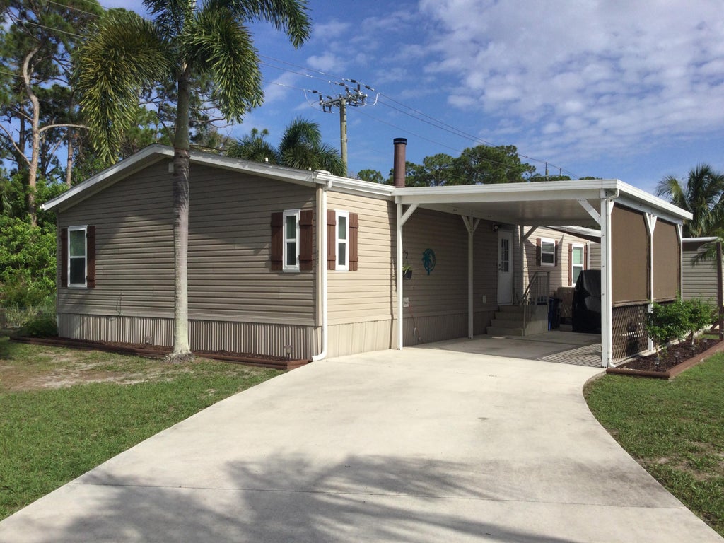 Move right into this beautifully updated home tucked back into a cul-de-sac and backing up to the canal and greenbelt. This home features 3 bedrooms and two baths with a wood burning fireplace in the great room. Enjoy sitting on your back deck in the morning with your coffee or in the evening with your glass of wine while enjoying the peaceful environment. Possibly you'll be entertained with the otters floating by. Land lease covers all amenties, taxes, lawn care, trash removal and sewer. Amenities include golf, two pools (one heated), shuffleboard, pickleball, tennis, bocce, billiards, clubhouse, party room, library and much much more. Future residents must be approved by Spanish Lakes. Call for application.