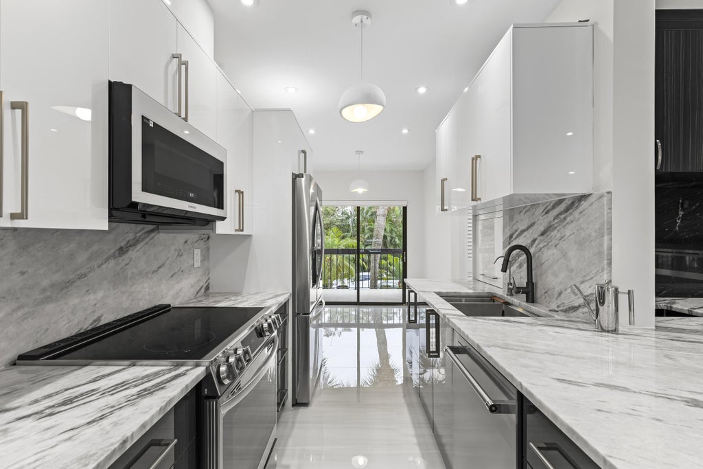Fully Remodeled Condo. Bathroom extended across the hall way to give you the ultimate luxury experience. Enjoy two walk in closets off the master room, custom and frosted glass extensions, marble counters and two balcony breakfast spots. If that isn't enough for you enjoy the full wet bar with waterfall edges and pop up electrical sockets. Custom cabinetry and electric fireplaces. This home is designed like nothing else in the incredible polo club, across from the lovely gym and tennis courts.