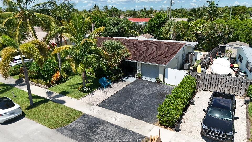 Great Single Family pool home with excellent location under 10 minutes to the beach and no HOA fees or restrictions. Tastefully redone kitchen with Cambria Quartz, SS Appliances & white Shaker cabinets, updated baths, gleaming terrazzo floors and an open flowing layout that makes entertaining a joy! Owner has removed the popcorn ceilings, and added distressed wood accents, plantation shutters and converted the garage to a large bonus room that could be an office. Large family room can be easily converted to a third bedroom but Owner made as their fitness space. New flat roof 2019, new A/C w HALO air purification 2020, tankless water heater 2020; whole house water purification, keyless entry and hurricane rated shed. Come enjoy this great Swimming pool with a tiki bar to bring friends over