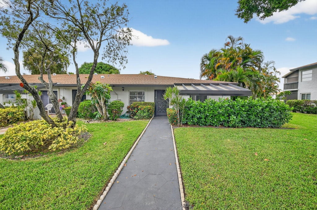 Welcome to Palm Greens! This rarely available 2BR/2BA corner villa is an ideal primary or seasonal home in a sought-after 55+ community. Enjoy serene lake views from your private screened lanai with paver patio area & no rear neighbors. This first-floor villa features tile flooring through out, a previously remodeled kitchen w/granite counters, white appliances, plantation shutters kitchen windows, washer/dryer. The primary suite offers a walk-in closet, extra storage. Resort-style amenities include a tennis club, clubhouse, lap pool, hot tub, gym, cafe, billiards & sauna. Located just 6 miles from the beach, Downtown Delray's Atlantic Ave, restaurants, shopping & Delray Medical Center. Don't miss this opportunity schedule your showing today! COMES FURNISHED & TURNKEY.