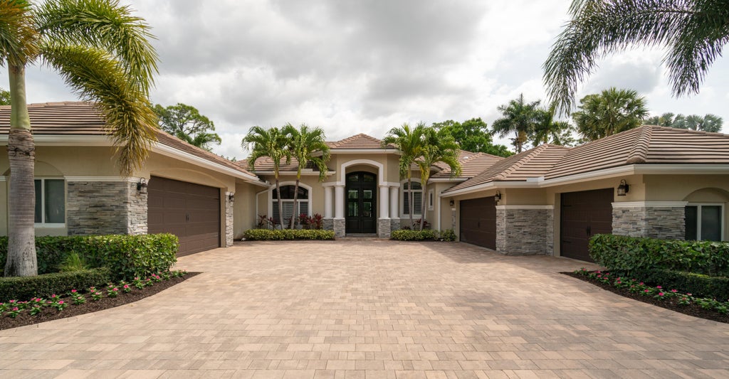 Over 5600 sq ft of perfection with a 5 car garage!! Newly renovated (2025) home offers 4 bedrooms, 5 bathrooms, PLUS office, GUEST HOUSE (Mother in Law suite) with kitchenette and mini split AC! Beautiful custom wood floors in living areas plus tongue and groove wood ceilings in several areas as well as wood beams in the living room. The entire home is protected by hurricane rated impact glass windows and doors, updated and refreshed marble patio/pool with screen enclosure, updated bathrooms, custom closets, gutters, garage space for 5 cars with circular paver drive, batten board throughout living areas, extra fridge in the laundry room and backs to the 4th green of Mayacoo Lakes CC (optional membership). Enjoy the golf course view while lounging in your heated pool and spa.Breakers West offers 2 optional private Golf Clubs both offering golf, tennis and social memberships. 2 manned guard gates, roaming security and roaming first responders. 15 min to PBIA and Downtown WPB. 15 minutes to Wellington's Equestrian Facility. 20 min to Palm Beach island and world class beaches. 5 min to Kings Academy, 15 min to Oxbridge Academy, 20 min to Rosarian Academy & Palm Beach Day Academy.