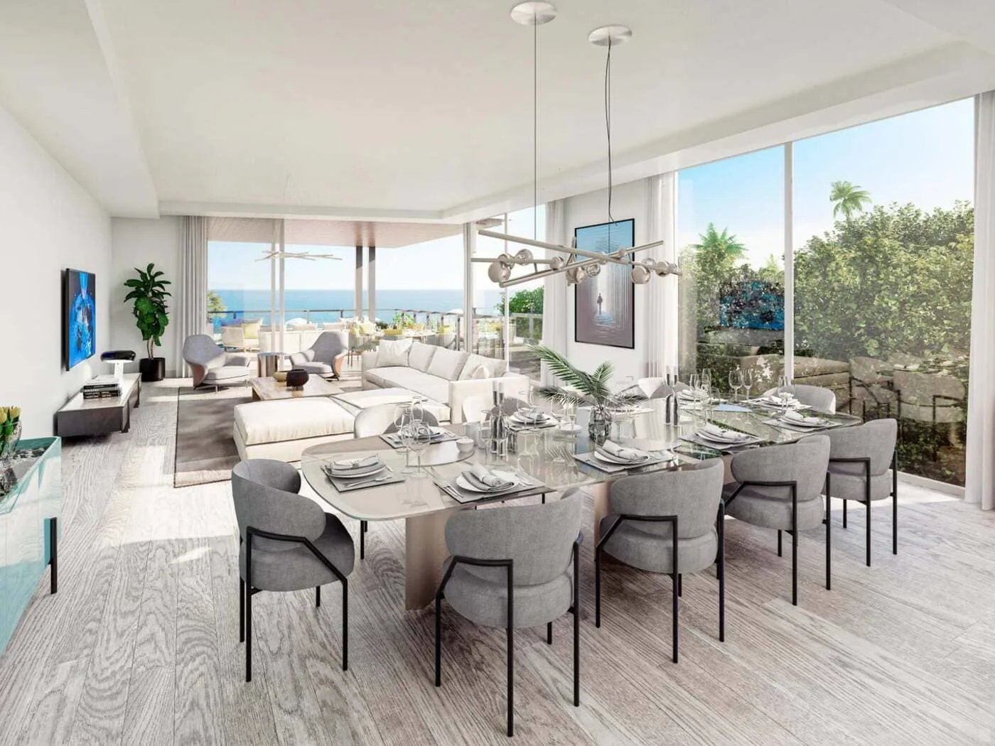 Penthouses include wraparound terraces and private plunge pools accessible from the main terrace or master suite. Each penthouse bedroom has direct terrace access.